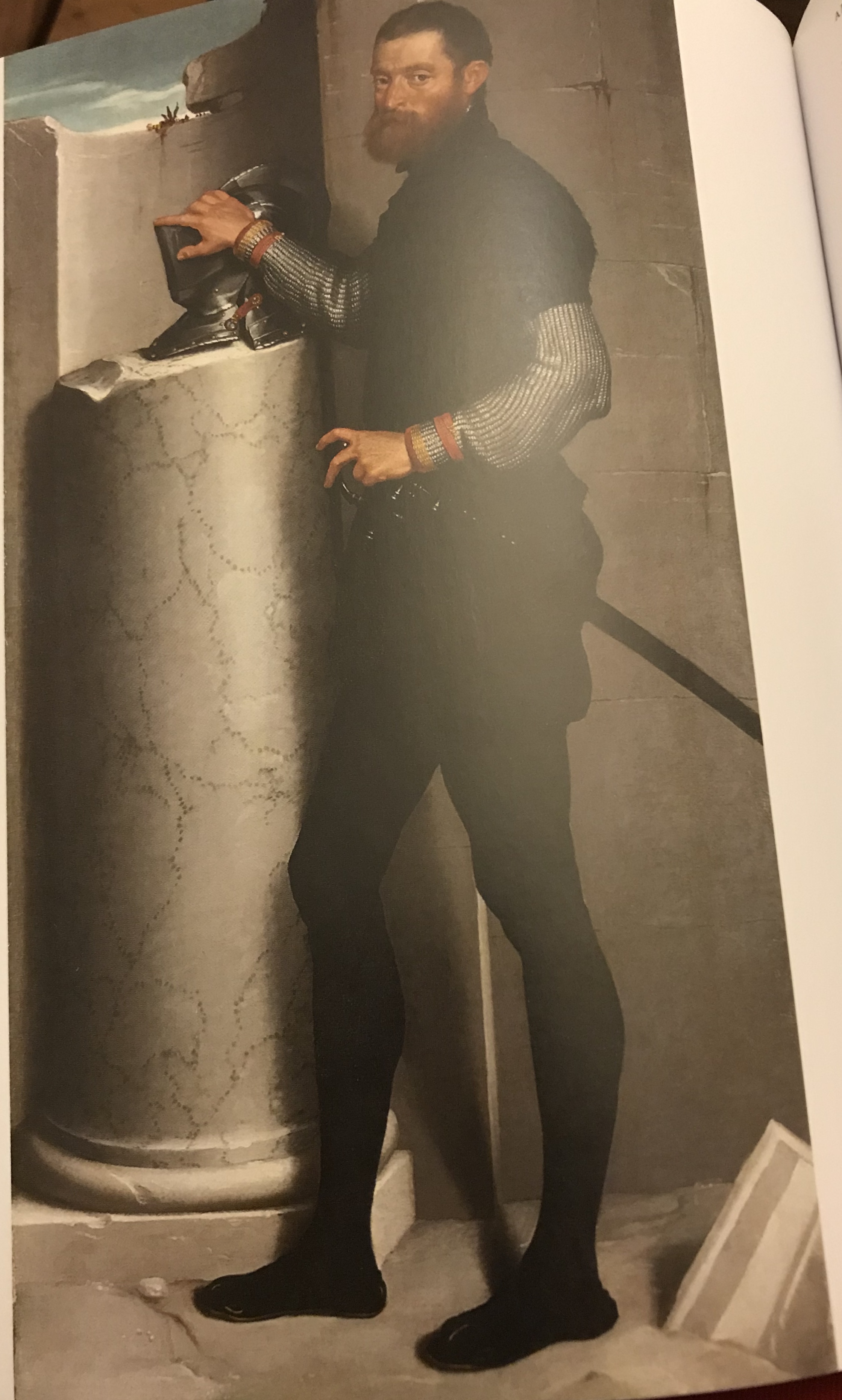 I know this is frightfully wordy and technical, but I hadn’t really thought before about the shape of an object causing its own shadow on itself, and then also being subject to the shadows cast upon it by other things. I have been consciously trying to think of this as “modelling shadow” and “cast shadow” when I have been sketching – as exemplified by the painting by Giovanni Battista Moroni – Portrait of a Gentleman with his Helmet on a Column Shaft, 1555-6.