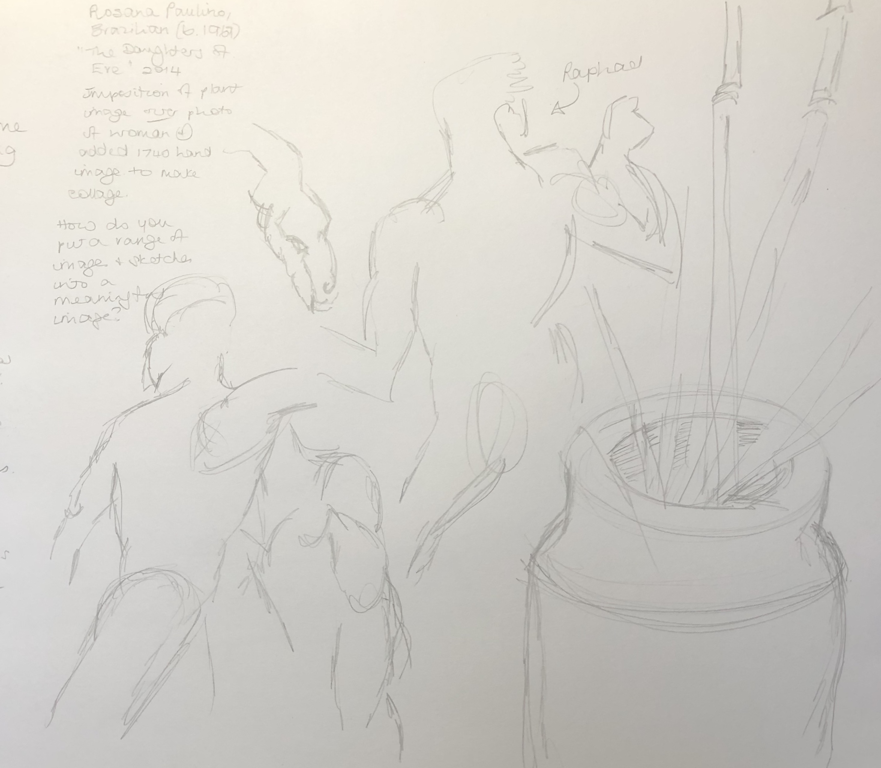 We did several warm-up drawings in a combination of pencil and charcoal (such as continuous line drawings, blind drawings, two-handed drawings, making slow and quick marks), gradually progressing to larger drawings building in use of memories of the place, using extra media such as ink, focusing in on a part of the photo, and thinking about creating contrast by making differing weight and quality of marks.